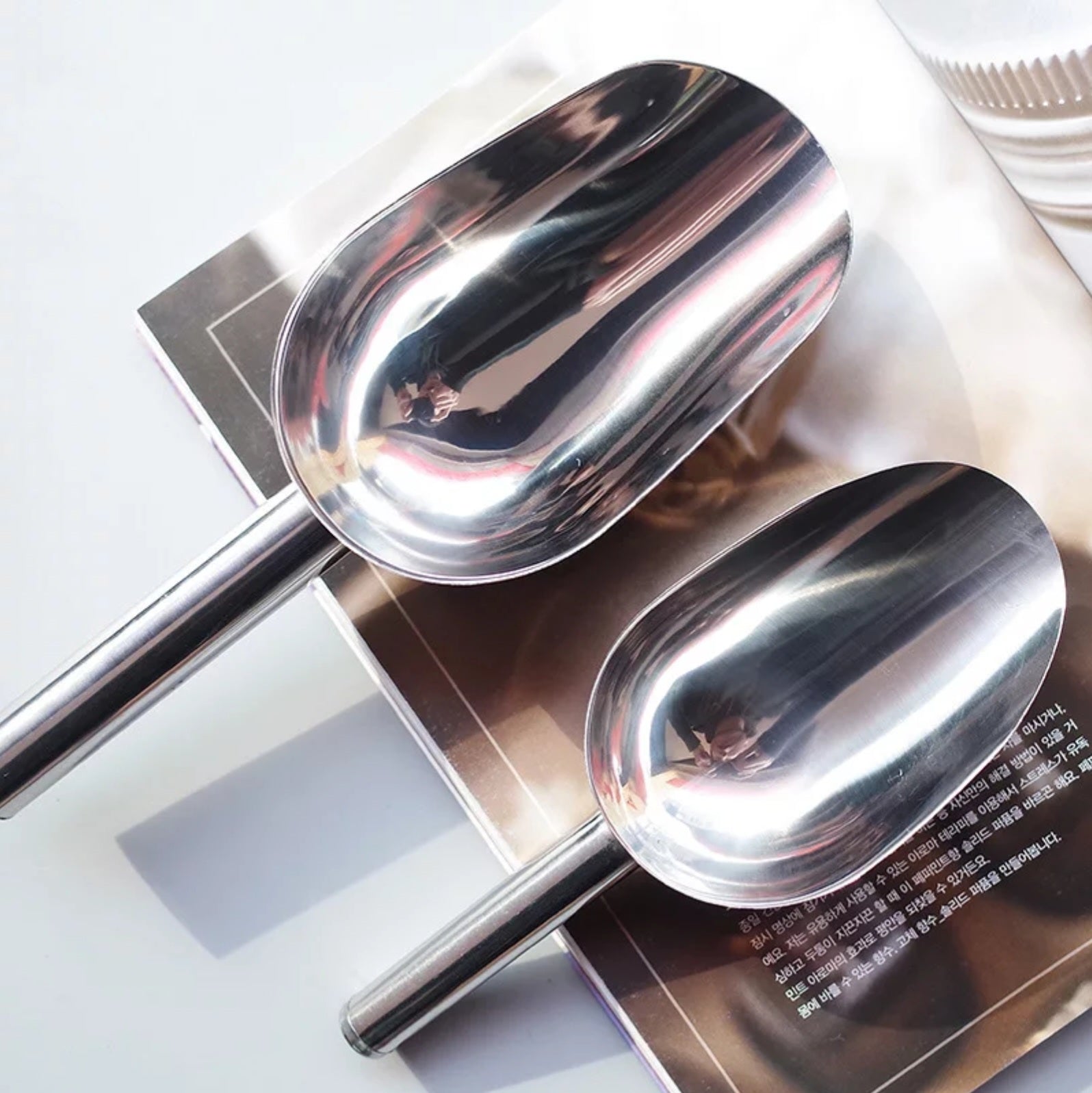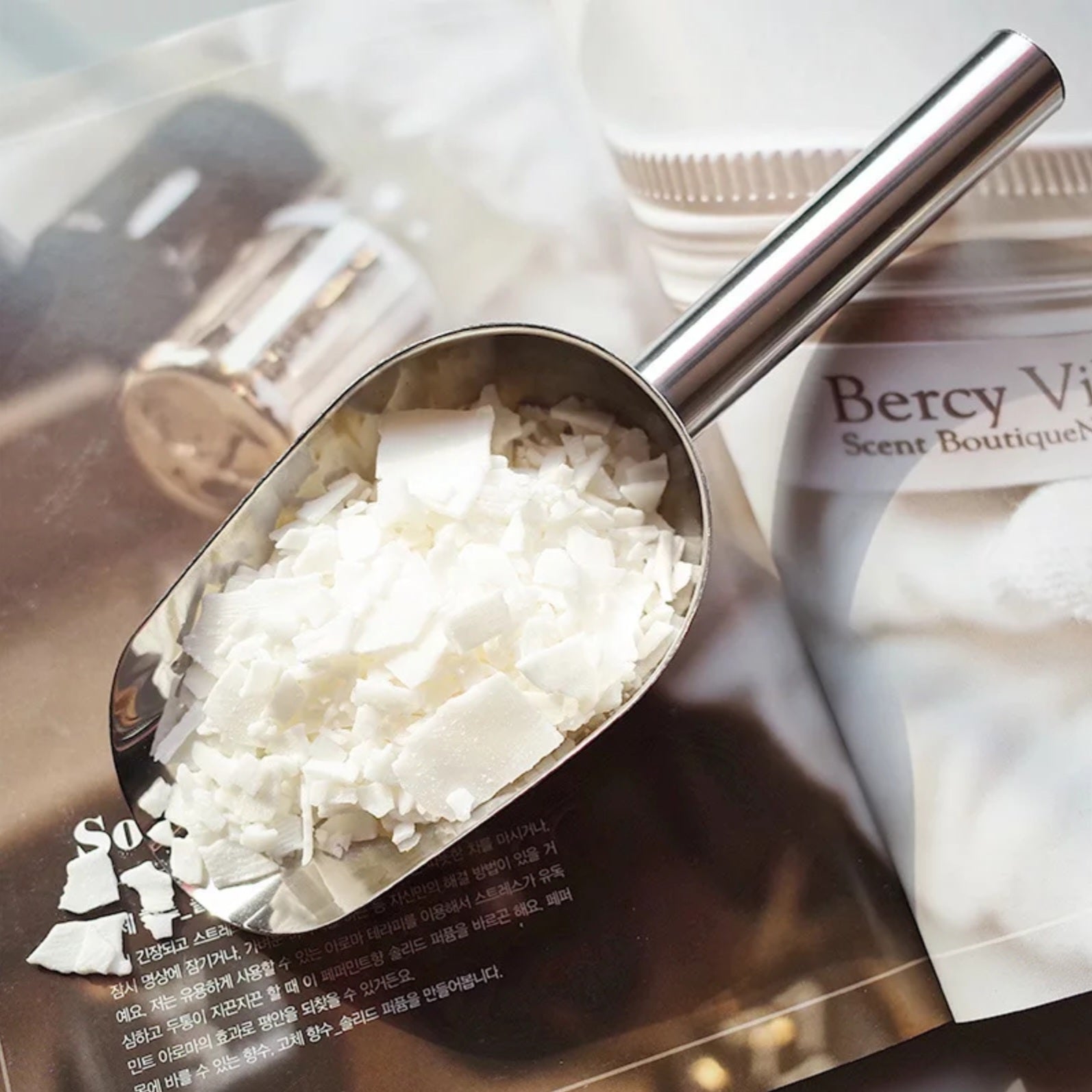 A big metal scoop that is great for scooping large amounts of wax into your wax melter or jug.