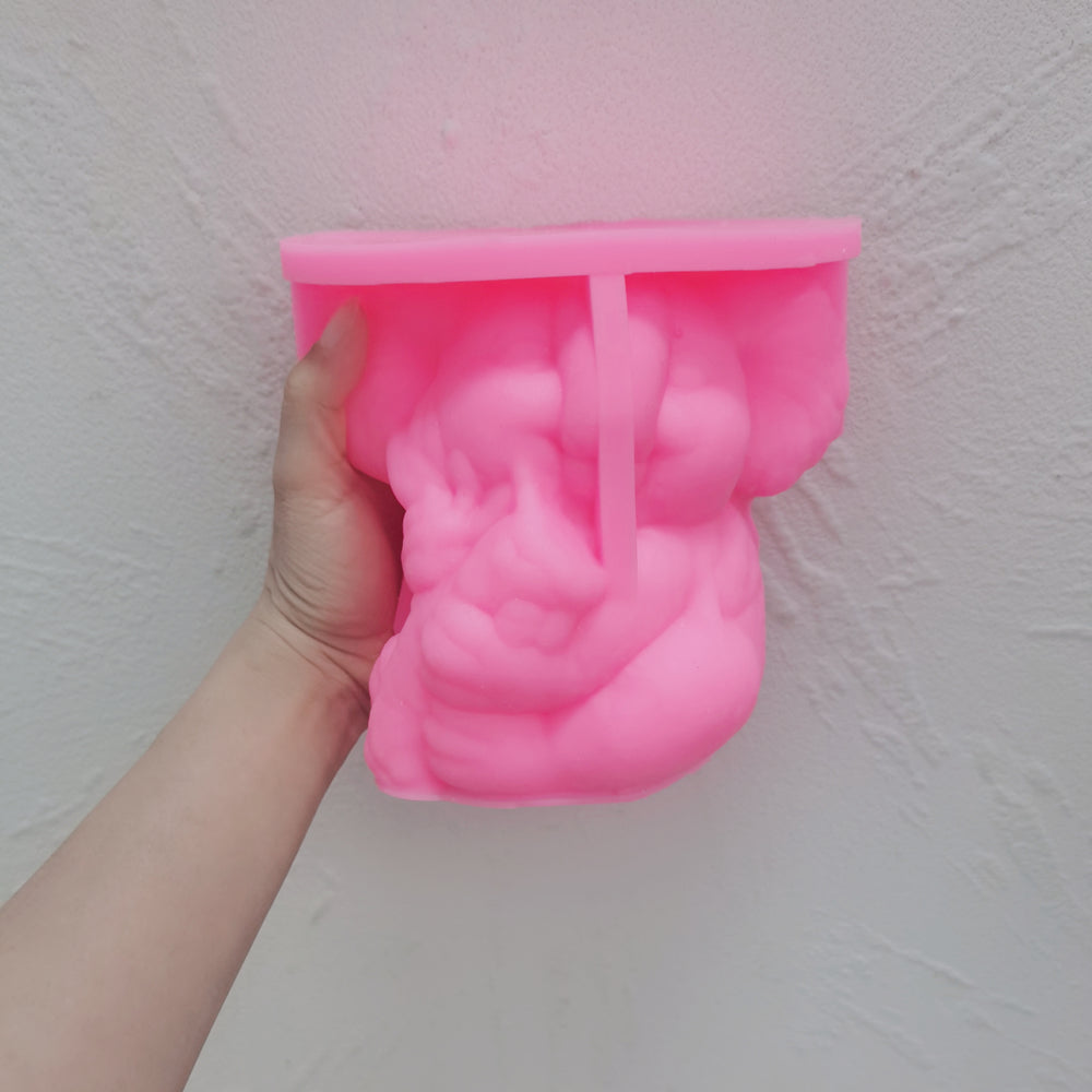 To use our candle moulds, simply start by threading the wick through the head area of the mould and securing it in place with a wick holder. Then, pour in your melted wax and let it cool until it hardens. Depending on the type of wax you are using, you may need to perform a second pour to even out the surface of the candle. We recommend using a firm pillar wax to minimise breakage. Tart wax and soft pillar waxes are not suitable for this design. Allow your candle to cure overnight before carefully unmoulding it.